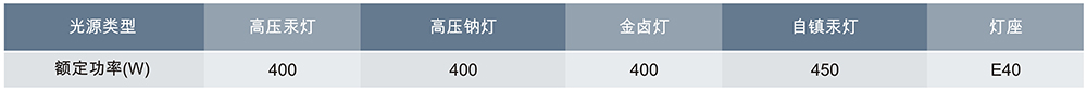 > ?可配裝白熾燈、汞燈、高壓鈉燈、金鹵燈、大功率節能燈。