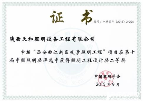 2015榮獲中國照明學會第十屆中照照明獎“二等獎”