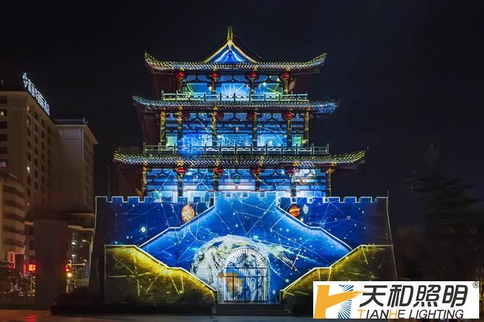 工程以山、水、人、城四個空間層次突出“光繪丹江水墨、影動商山雒水”的商洛夜景文化主題,運用綠色、環保、節能的LED燈具以及全息投影(裸眼3D)新技術手段,采用國際著名、功能強大的智慧燈光控制系統,通過對丹江河水系、兩岸景觀、建筑與山體的聯動設計,配以聲、光、電多媒體的綜合應用,打造了一幅具有商洛人文特色的“商山雒水詩意畫卷”,為營造商洛夜間旅游休閑氛圍和提升丹江國家級水利風景區奠定了基礎。